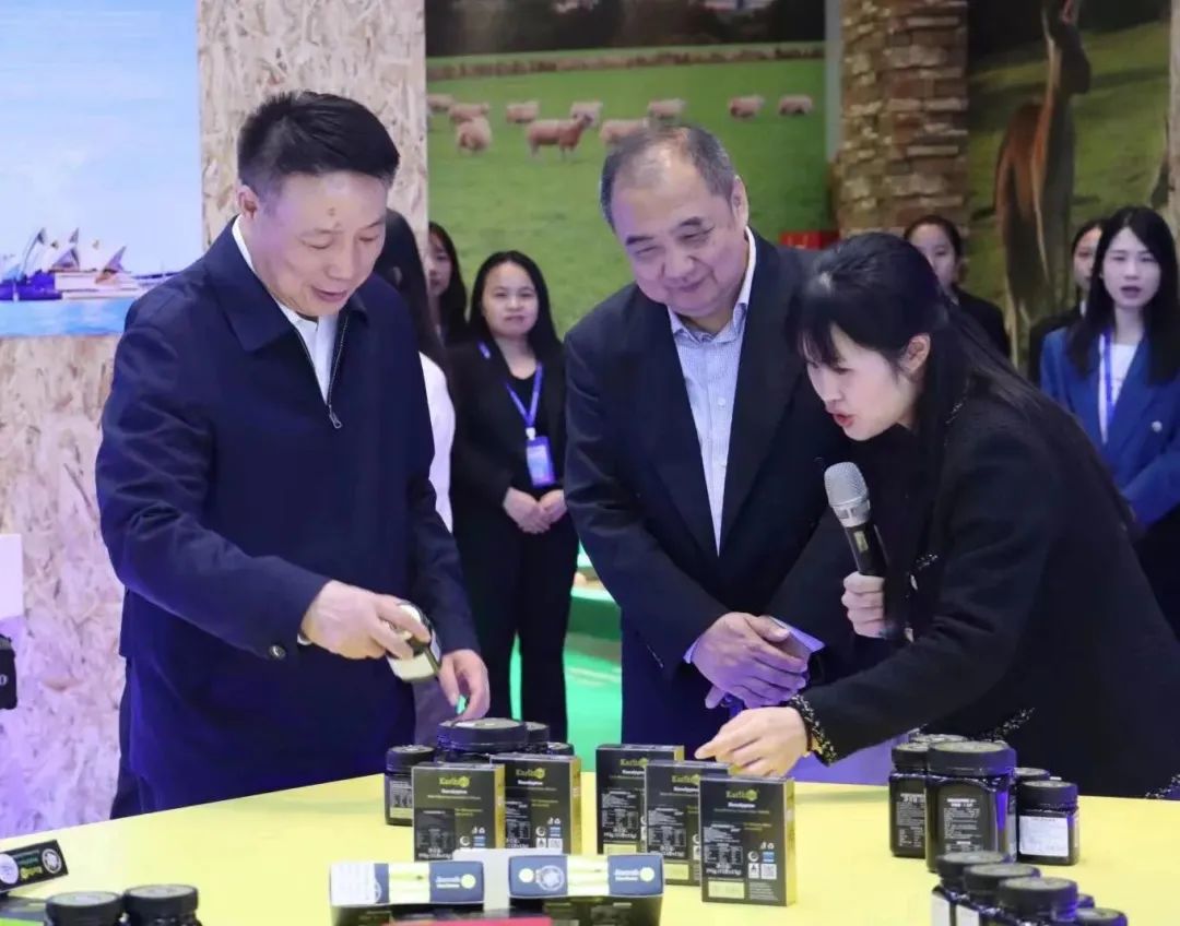 朱銳部長(zhǎng)助理在匯聚中心展館了解入駐產(chǎn)品情況