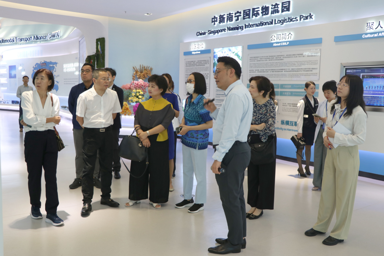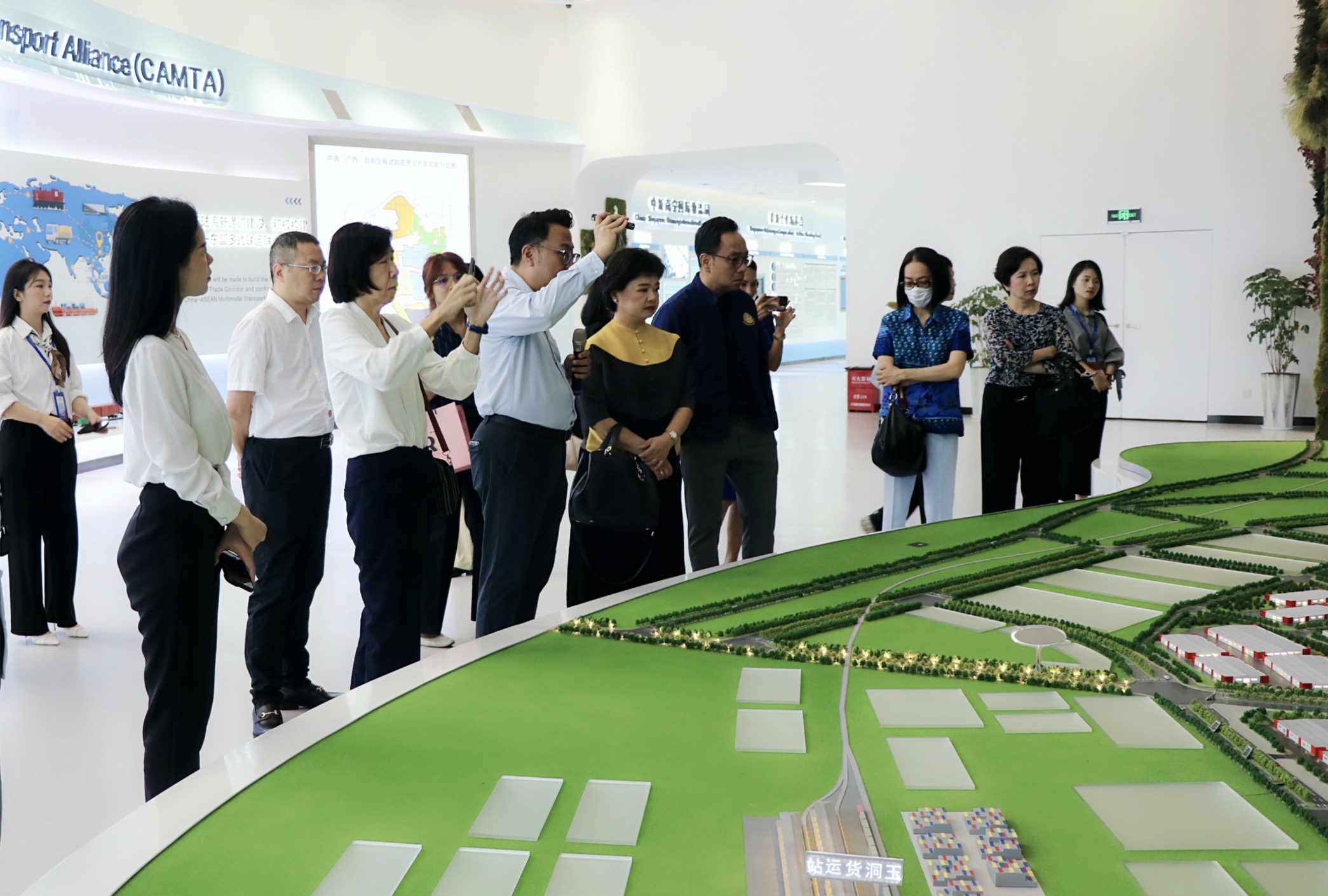 2023年6月30日,泰國商業(yè)部巡視組組長(副司級(jí))素南塔.剛婉古吉女士一行到中新南寧國際物流園(以下簡稱“中新物流園”)、中國—東盟特色商品匯聚中心(以下簡稱“匯聚中心”)考察,就進(jìn)一步提升中泰兩國在經(jīng)貿(mào)領(lǐng)域的合作與交流展開探討。廣西新中產(chǎn)業(yè)投資有限公司副總經(jīng)理商紅熱情接待了巡視組一行。