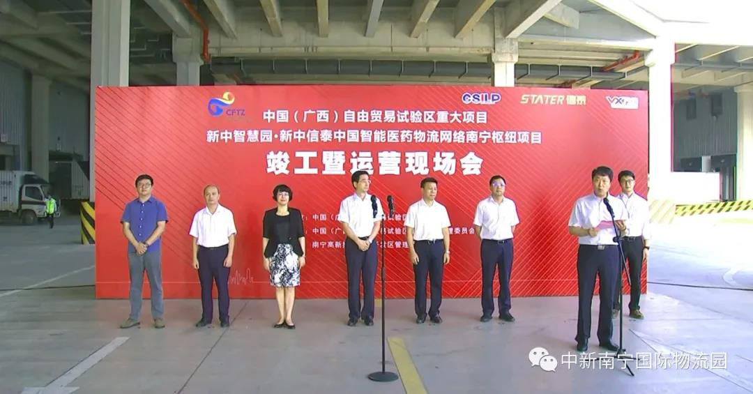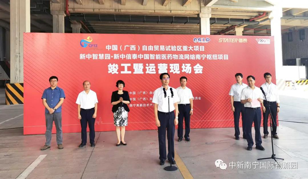 此次現(xiàn)場(chǎng)會(huì),由南寧五象新區(qū)管委會(huì)副主任譚玫瑰主持,廣西新中產(chǎn)業(yè)投資有限公司總經(jīng)理鄭權(quán)介紹項(xiàng)目情況,自治區(qū)人大常委會(huì)副主任、黨組副書(shū)記,廣西自貿(mào)試驗(yàn)區(qū)建設(shè)指揮部指揮長(zhǎng)張曉欽宣布“新中信泰中國(guó)智能醫(yī)藥物流網(wǎng)絡(luò)南寧樞紐項(xiàng)目和新中智慧園竣工暨正式運(yùn)營(yíng)。”