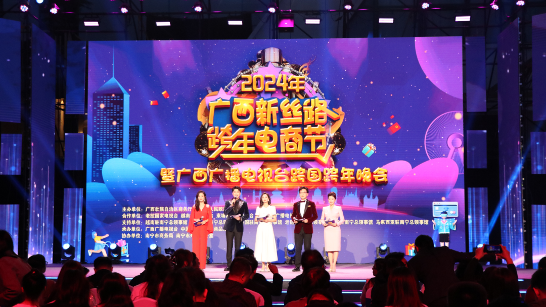 網(wǎng)羅八桂優(yōu)品、東盟好物,共赴e場消費盛宴。由廣西壯族自治區(qū)商務廳聯(lián)合南寧市人民政府,聯(lián)動越南、柬埔寨、泰國、老撾、緬甸、馬來西亞駐南寧總領事館共同舉辦的2024年廣西新絲路跨年電商節(jié)暨廣西廣播電視臺跨國跨年晚會在國內主會場廣西南寧市中國—東盟特色商品匯聚中心(以下簡稱“匯聚中心”)、海外分會場老撾萬象國家文化宮同步精彩啟幕。