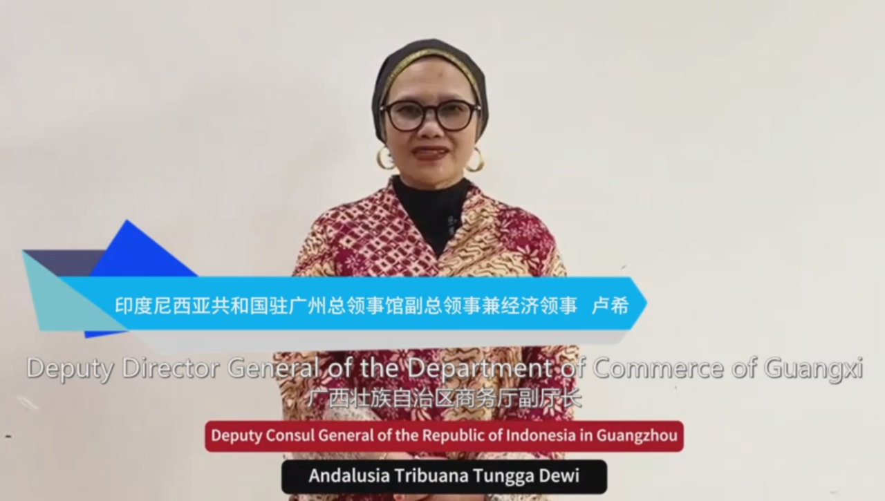 ▲盧希副總領(lǐng)事在視頻致辭中表示,包括廣西在內(nèi)的華南地區(qū)在促進(jìn)印尼與中國建立更緊密、更深層次關(guān)系方面發(fā)揮著關(guān)鍵作用。清真市場(chǎng)為印尼與廣西之間的合作,包括在東盟框架內(nèi)的合作提供了巨大的機(jī)會(huì)。今年是印尼和中國建交75周年,中印尼兩國政府致力于進(jìn)一步加強(qiáng)伙伴關(guān)系。為此,她希望這次活動(dòng)能夠取得更加具體的成果,造福兩國人民。