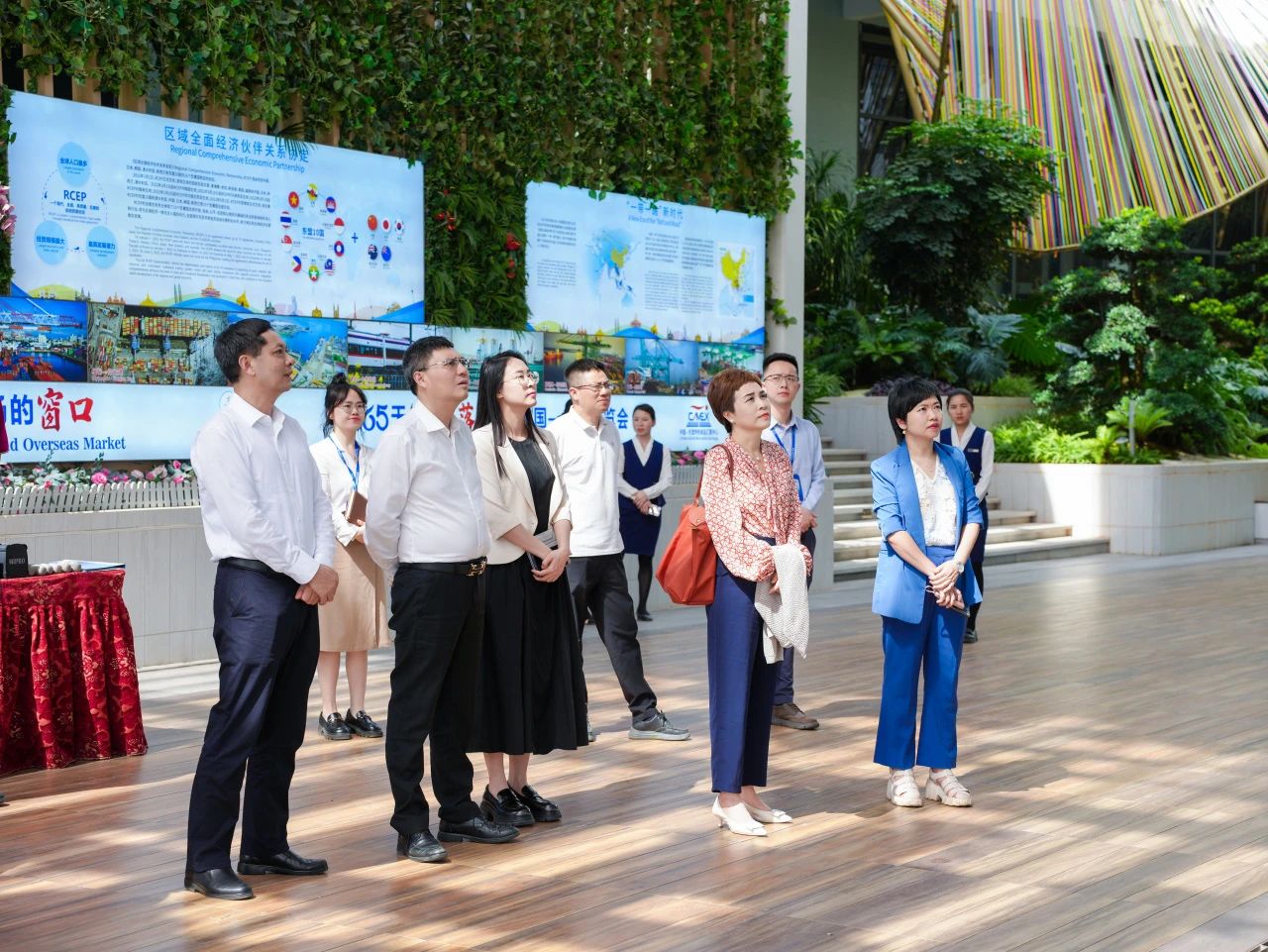 在匯聚中心參觀各主題展館的過程中,調(diào)研組詳細(xì)了解項(xiàng)目如何通過以“物”引“流”、以“物”促“流”的方式,搭建中國與東盟、RCEP其他區(qū)域國家乃至“一帶一路”沿線重要國家經(jīng)貿(mào)往來線上線下B2B、B2C一站式首選平臺(tái),成為外國商家進(jìn)入中國市場(chǎng)的首站,以及中國商家拓展海外市場(chǎng)的窗口。