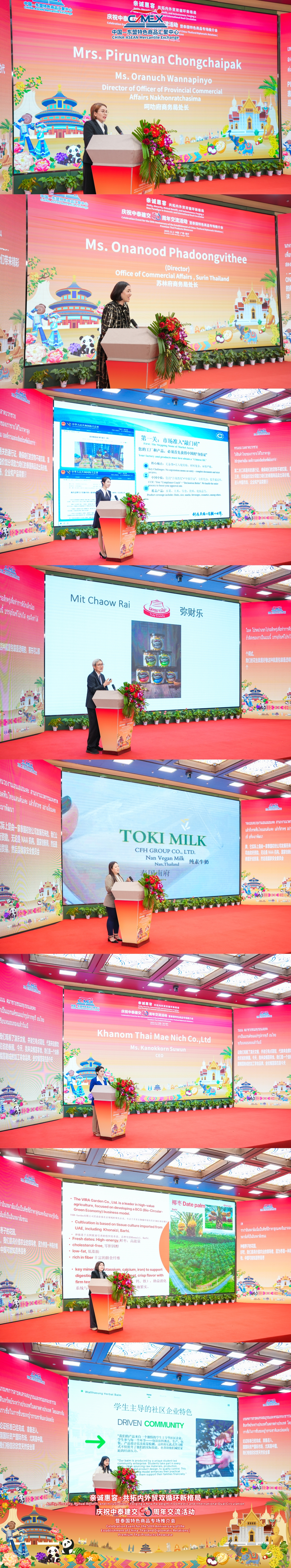 趙海燕董事長(zhǎng)在致辭中介紹,匯聚中心依托十八個(gè)獨(dú)具創(chuàng)新特色的沉浸式文化主題展館,以文化匯商家,以商貿(mào)聚合作,吸引了眾多國(guó)內(nèi)外政商團(tuán)體前來(lái)考察洽談,成為了外國(guó)商家進(jìn)入中國(guó)市場(chǎng)的首站以及中國(guó)商家拓展海外市場(chǎng)的窗口!同時(shí),目前正積極推進(jìn)建設(shè)的中國(guó)—東盟(南寧)水果交易中心,將重點(diǎn)服務(wù)中國(guó)與東盟之間的水果貿(mào)易。未來(lái),匯聚中心將與泰國(guó)商業(yè)部等相關(guān)部門攜手合作,融合泰國(guó)作為東盟重要的水果及農(nóng)產(chǎn)品出口國(guó)的優(yōu)勢(shì),通過(guò)AI技術(shù)賦能貿(mào)易創(chuàng)新合作,助力雙邊企業(yè)共同開(kāi)拓中國(guó)與東盟市場(chǎng)。
