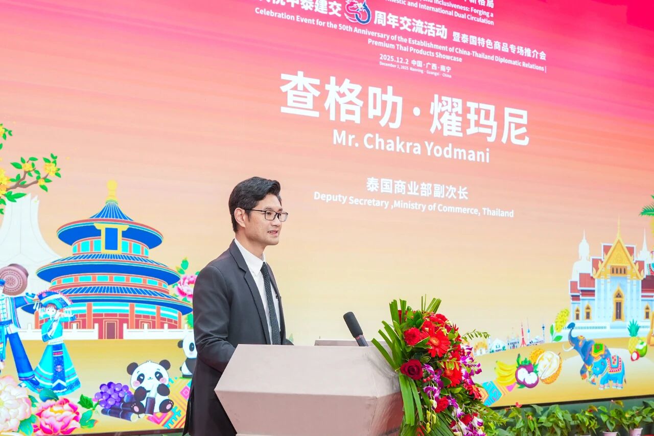 12月2日,“親誠(chéng)惠容·共拓內(nèi)外貿(mào)雙循環(huán)新格局——慶祝中泰建交50周年交流活動(dòng)暨泰國(guó)特色商品專場(chǎng)推介會(huì)”在中國(guó)—東盟特色商品匯聚中心隆重舉辦。本次活動(dòng)由泰國(guó)商業(yè)部、泰國(guó)商業(yè)部國(guó)際貿(mào)易促進(jìn)司、中國(guó)國(guó)際貿(mào)易促進(jìn)委員會(huì)廣西壯族自治區(qū)分會(huì)、中國(guó)—東盟商務(wù)理事會(huì)聯(lián)席秘書處、中國(guó)—東盟特色商品匯聚中心(簡(jiǎn)稱“匯聚中心”)聯(lián)合主辦,中國(guó)國(guó)際商會(huì)廣西商會(huì)、中國(guó)檢驗(yàn)認(rèn)證集團(tuán)廣西有限公司、廣西達(dá)譯科技有限公司、邁越科技股份有限公司、方圓標(biāo)志認(rèn)證集團(tuán)廣西有限公司作為支持單位參與此次活動(dòng)。