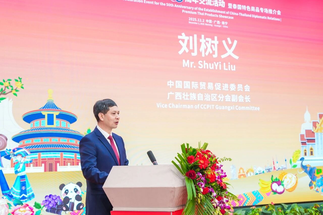 劉樹(shù)義副會(huì)長(zhǎng)在致辭中表示, 廣西始終把深化桂泰合作作為服務(wù)國(guó)家戰(zhàn)略的重要抓手,穩(wěn)步把“中泰一家親”的理念轉(zhuǎn)化為實(shí)實(shí)在在的合作成果。他希望以中泰建交五十周年為契機(jī),深挖中國(guó)—東盟自貿(mào)區(qū)3.0版和RCEP的政策紅利,以本次活動(dòng)為起點(diǎn),以“特色商品”為紐帶,推動(dòng)更多泰國(guó)水果、香米、手工藝品等特色商品通過(guò)廣西的跨境電商平臺(tái)走進(jìn)中國(guó)千家萬(wàn)戶,同時(shí)也鼓勵(lì)中國(guó)的機(jī)械設(shè)備、電子產(chǎn)品、輕工產(chǎn)品借助泰國(guó)市場(chǎng)輻射整個(gè)東盟。在此基礎(chǔ)上,桂泰合作必將邁上新的高度。