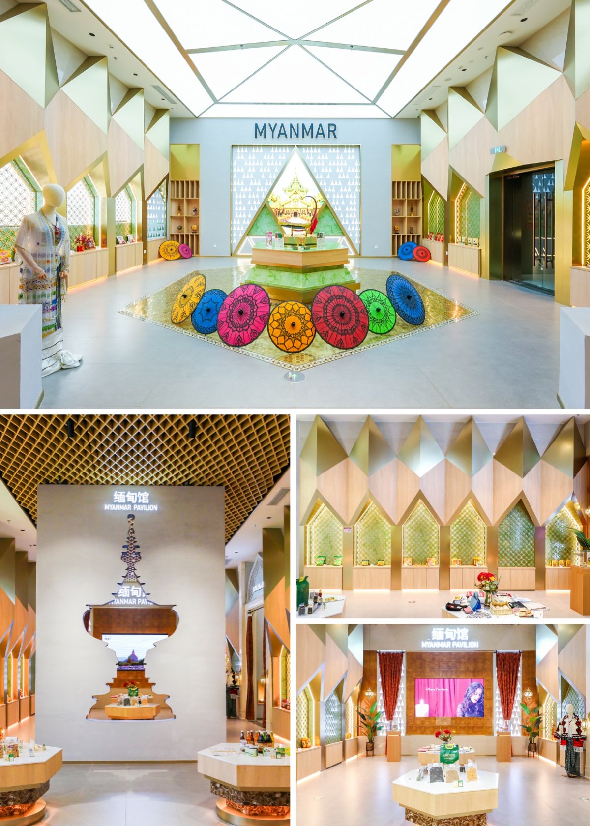 緬甸主題館內(nèi)展示了啤酒、茶葉、木偶奶茶、香米等多款特色商品,加之獨具當?shù)靥厣恼故九_,它們共同為我們打開了一扇感知緬甸民俗風情的窗口。