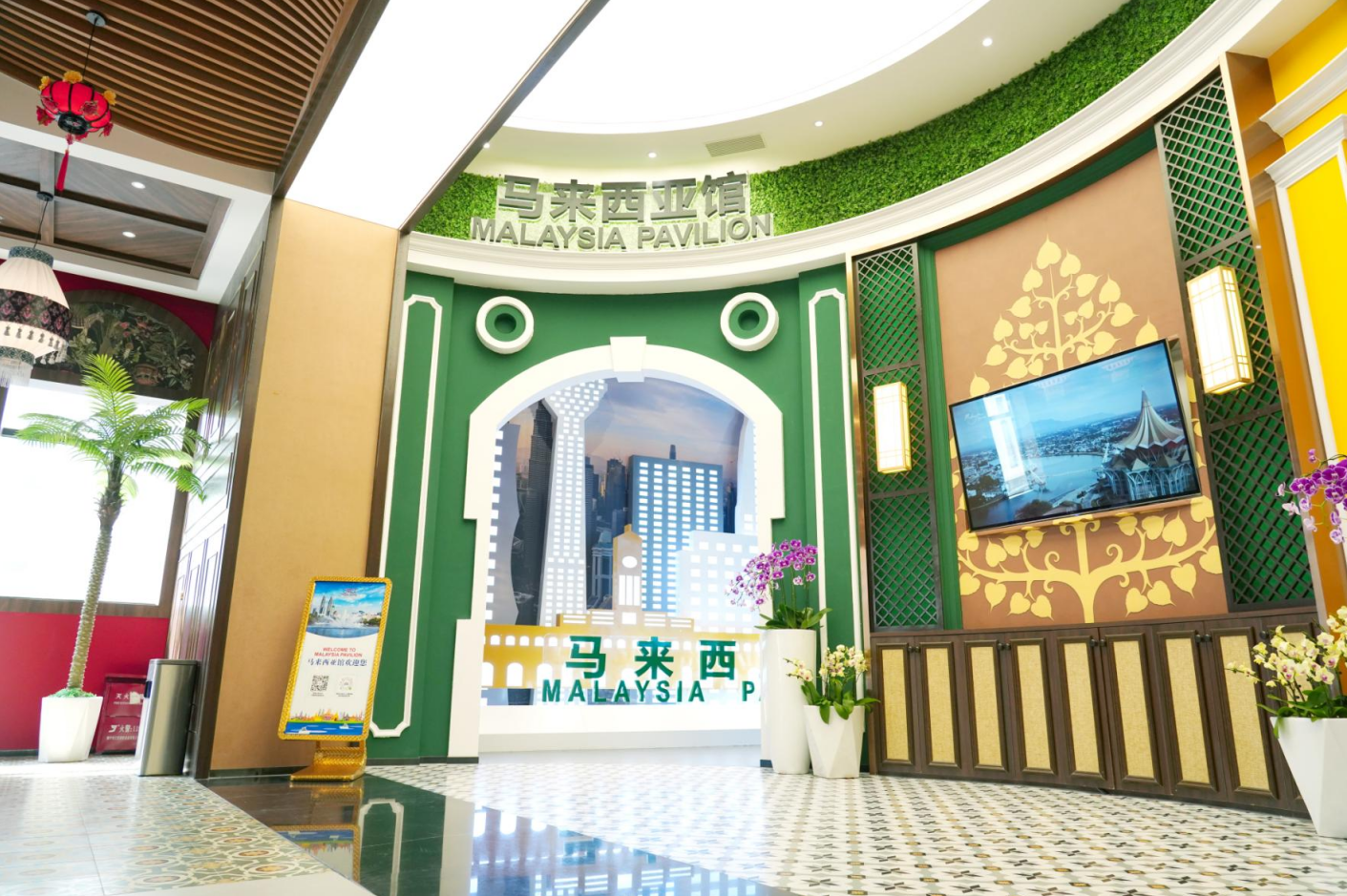匯聚中心精心打造了18個(gè)獨(dú)具特色的主題館。其中,馬來(lái)西亞主題館巧妙融入雙子塔、五大經(jīng)濟(jì)走廊、榴蓮樹(shù)、巴迪布等經(jīng)典元素。到訪嘉賓徜徉其間,既能沉浸式感受特色建筑元素與商品傳遞的濃郁文化魅力,又能通過(guò)線上平臺(tái)便捷選購(gòu)特色商品,盡享“線下體驗(yàn)+線上下單”的一站式商貿(mào)新體驗(yàn)!
